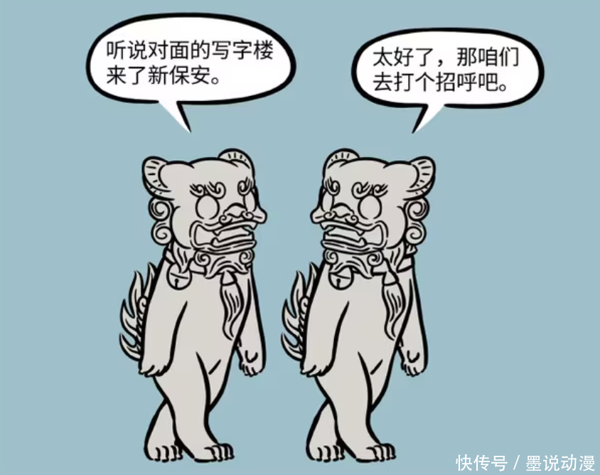 石狮子小刘和他的搭档出现过很多次,这一次它们出现,是为了引出新石狮子。这一只石狮子来自对面的写字楼,一样也是作为保安。因为离得很近,所以小刘和搭档决定去跟它打招呼。以后没准还能聚会和聚餐,也算是多一个朋友。