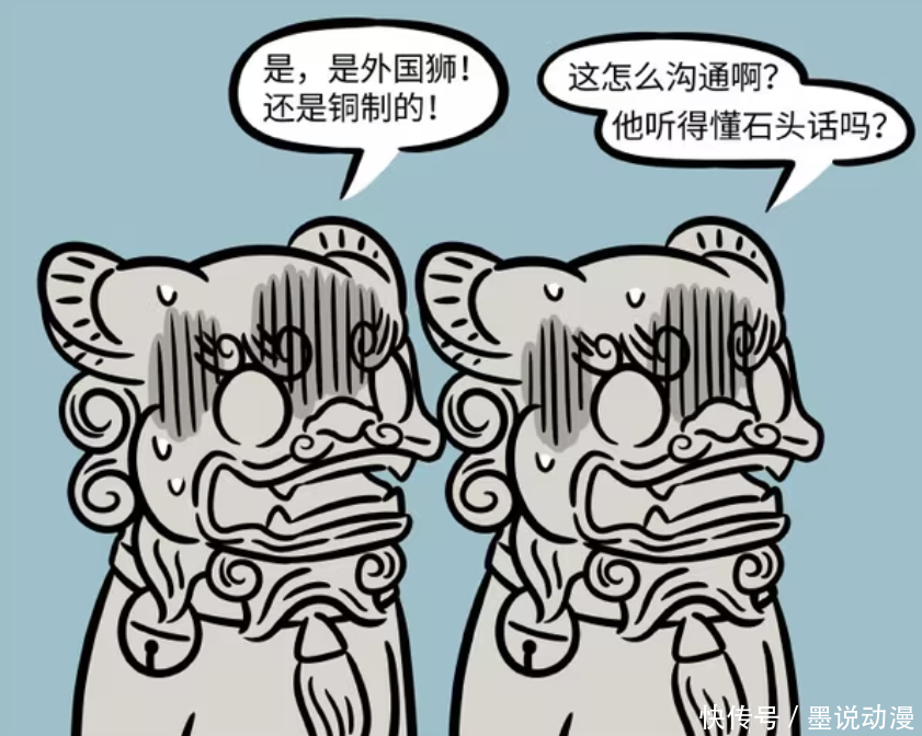 小刘觉得这只石狮子是外国铜制品,交流起来怕是有点困难。搭档也不知道该怎么沟通,不过总要硬着头皮上。它们想知道,外国石狮子是否能用石头语来交流。不过既然来了,总归有办法应对。